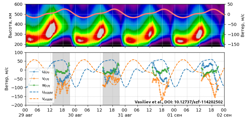- Анализ особенностей влияния динамики нейтральной атмосферы на параметры ионосферной плазмы (Zherebtsov G.A et al., 2024 ,Васильев, Едемский и др., 2025, Будовкина, Едемский и др., 2026)